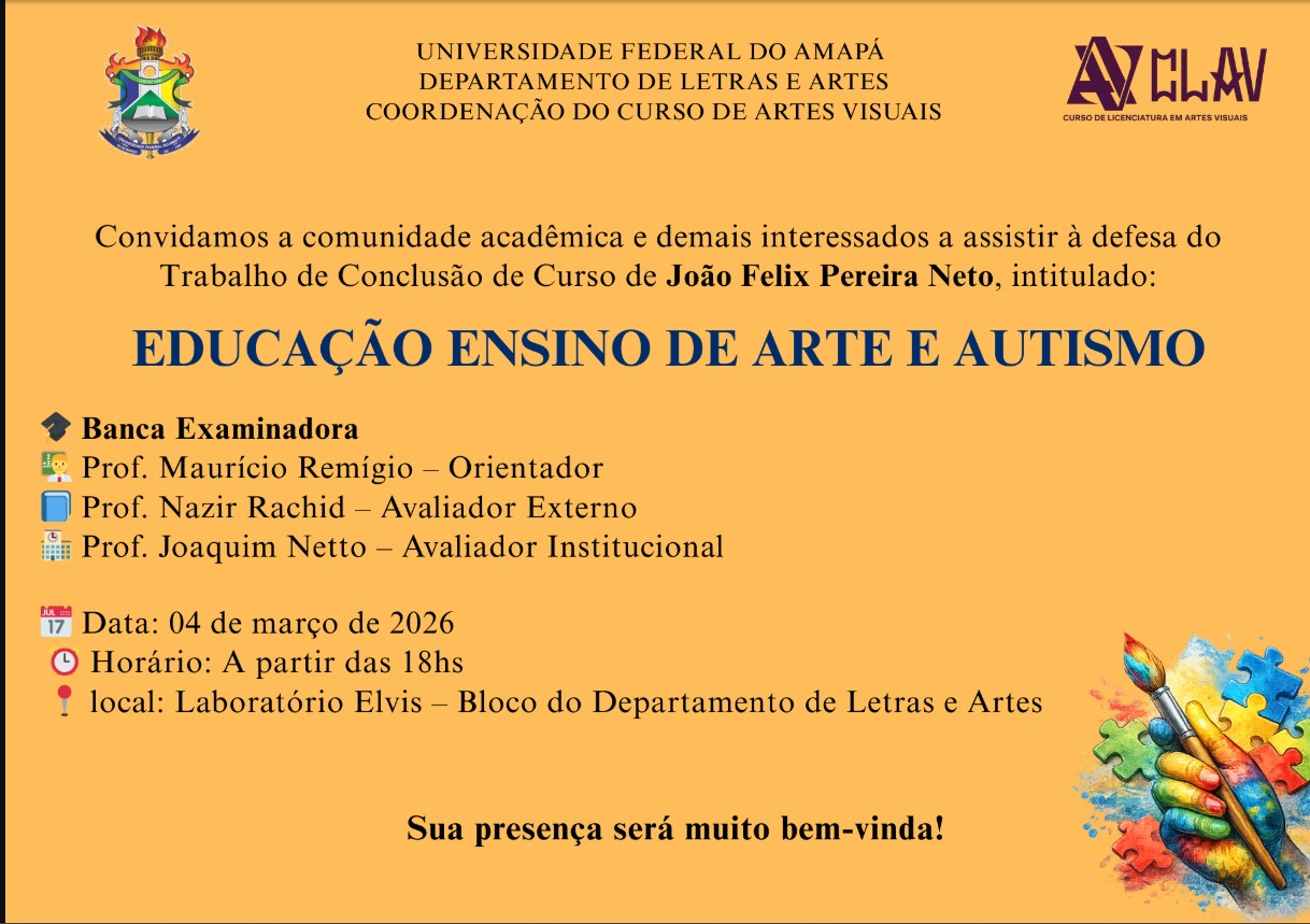 Dúvidas ou precisar de algum atendimento estamos disponíveis através do e-mail: 👉 artesvisuais@unifap.br