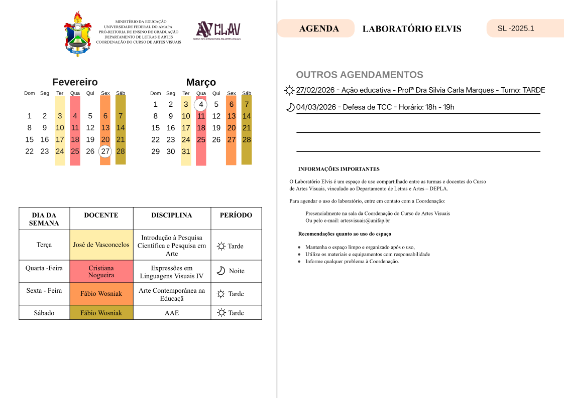 - NORMAS DE FUNCIONAMENTO DOS LABORATÓRIOS DO CURSO DE LICENCIATURA EM ARTES VISUAIS