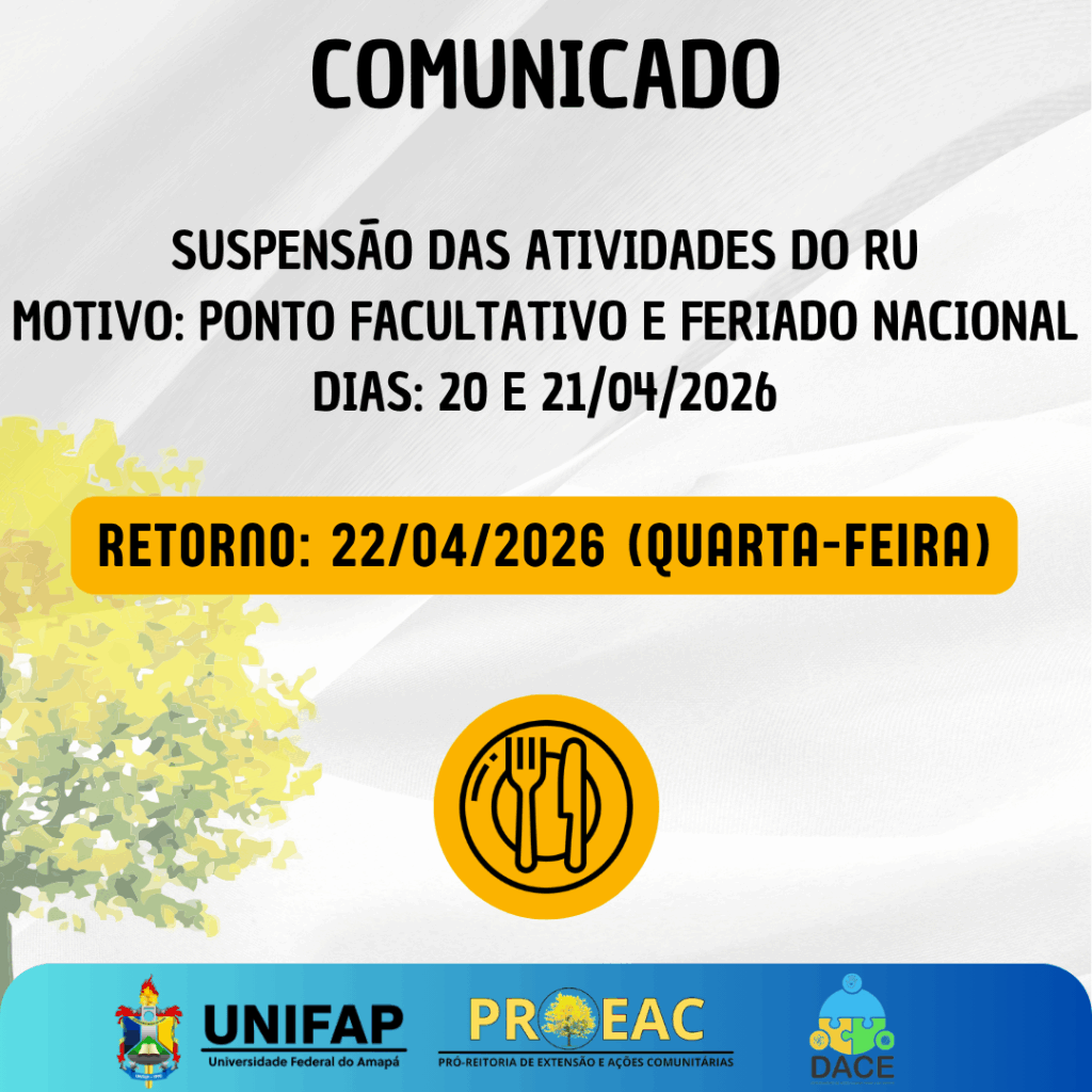 A Fundação Universidade Federal do Amapá (UNIFAP), por meio da Pró-Reitoria de Extensão e Ações Comunitárias (PROEAC) e do Departamento