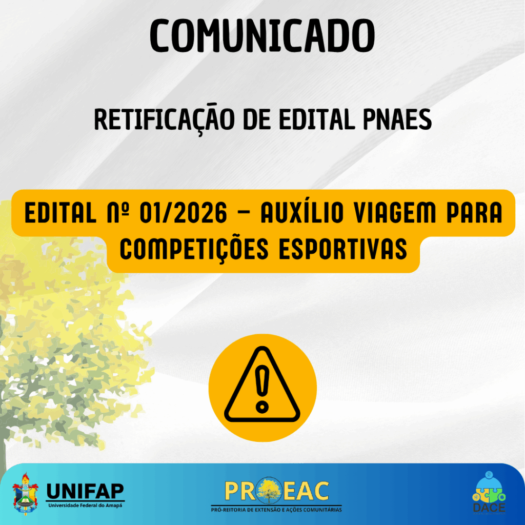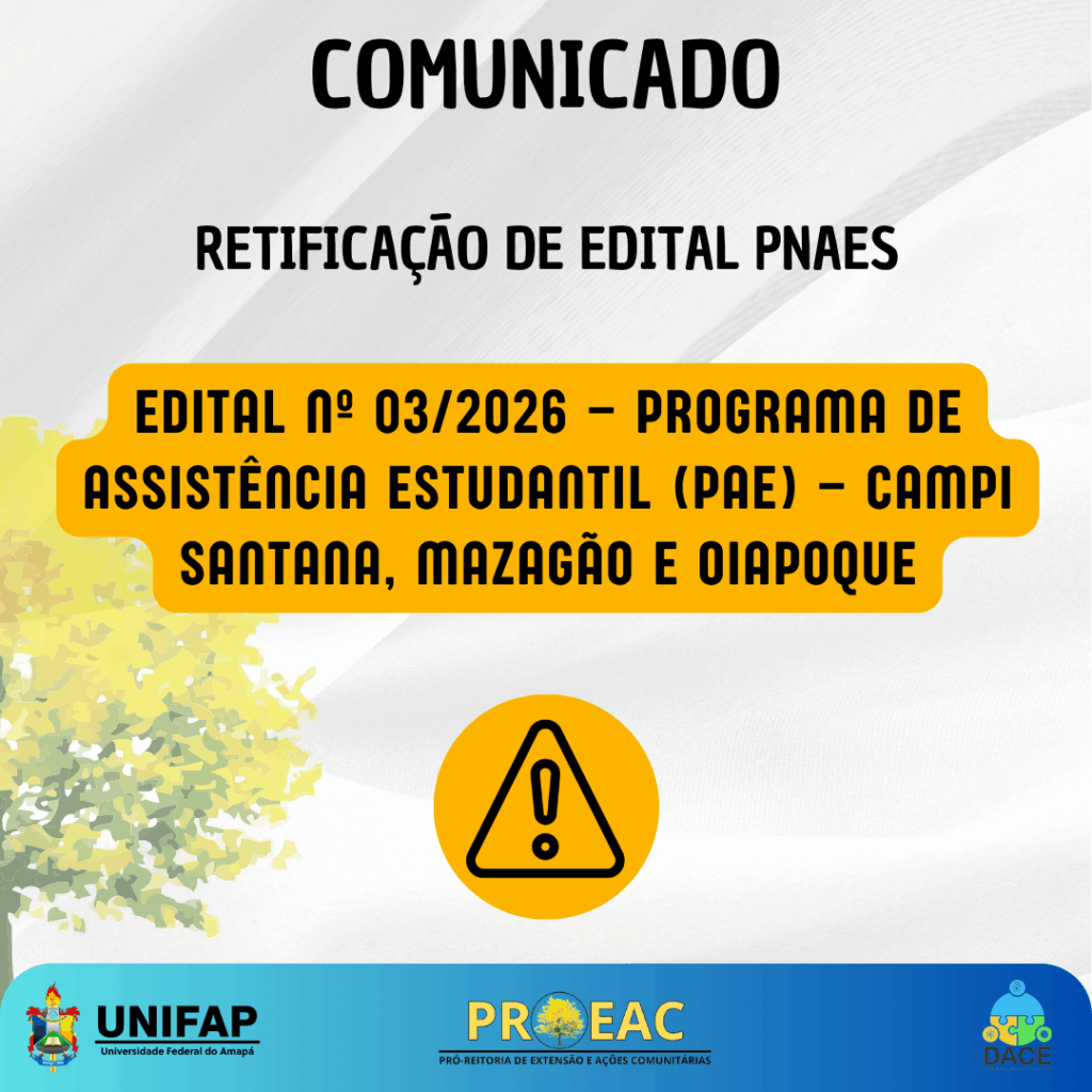 A Fundação Universidade Federal do Amapá (UNIFAP), por meio da Pró-Reitoria de Extensão e Ações Comunitárias (PROEAC) e do Departamento