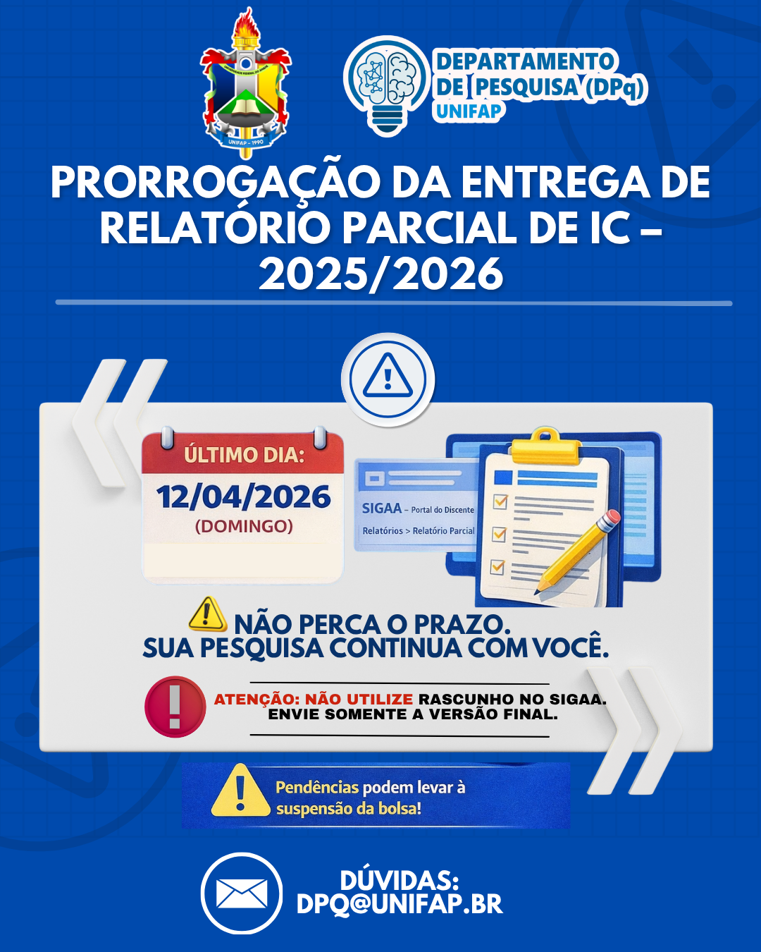 O prazo para entrega do Relatório Parcial de IC (2025/2026) foi prorrogado! 📝✨
