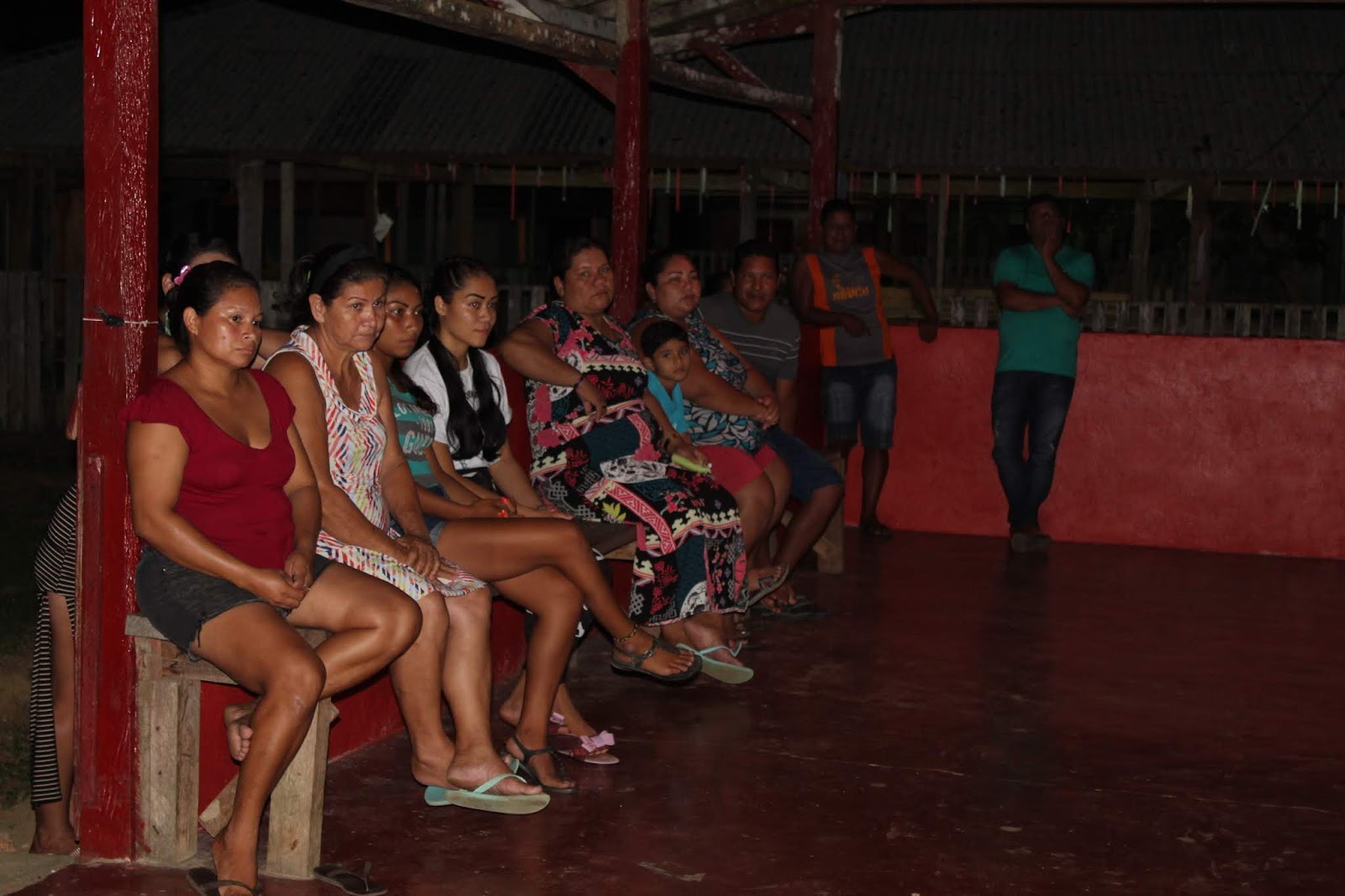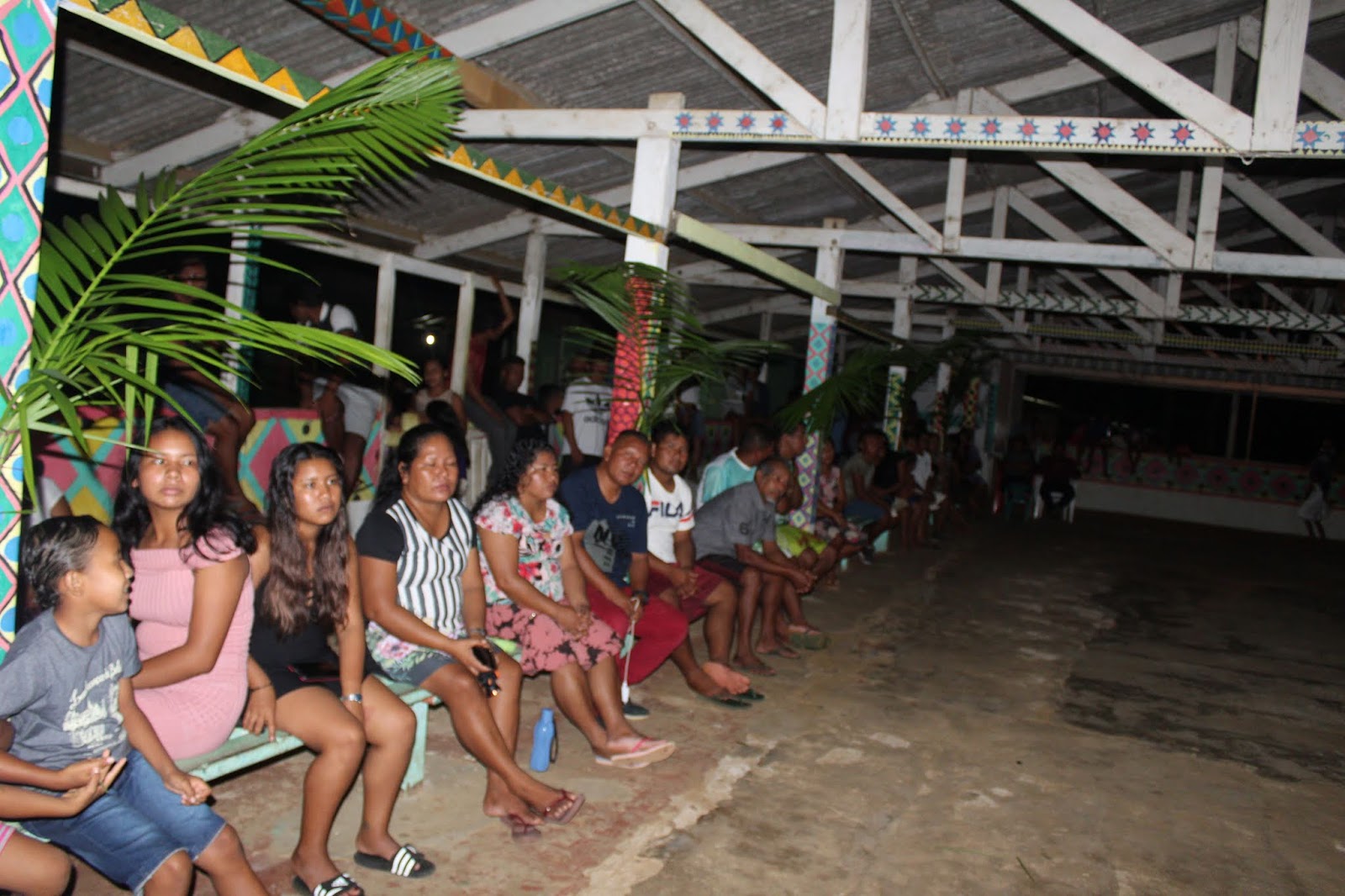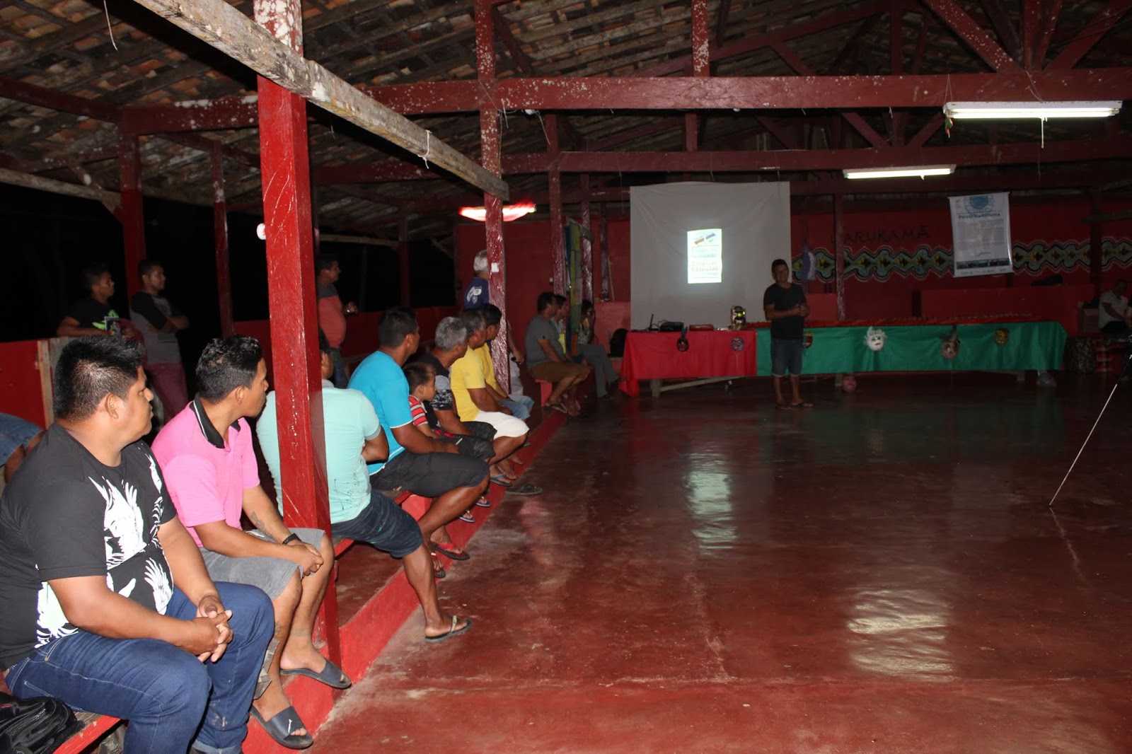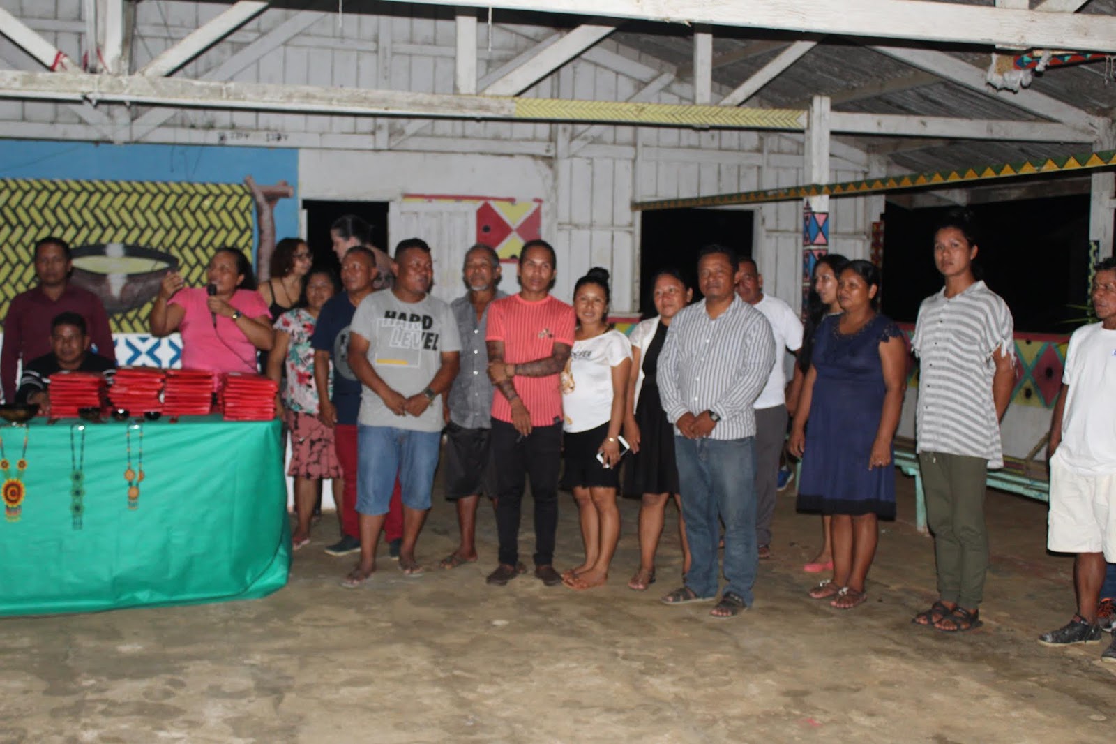 Abaixo vemos o público da Aldeia Kumarumã, prestigiando a Cerimônia de entrega dos produtos do Projeto de Valorização das Línguas Crioulas do Norte do Amapá.