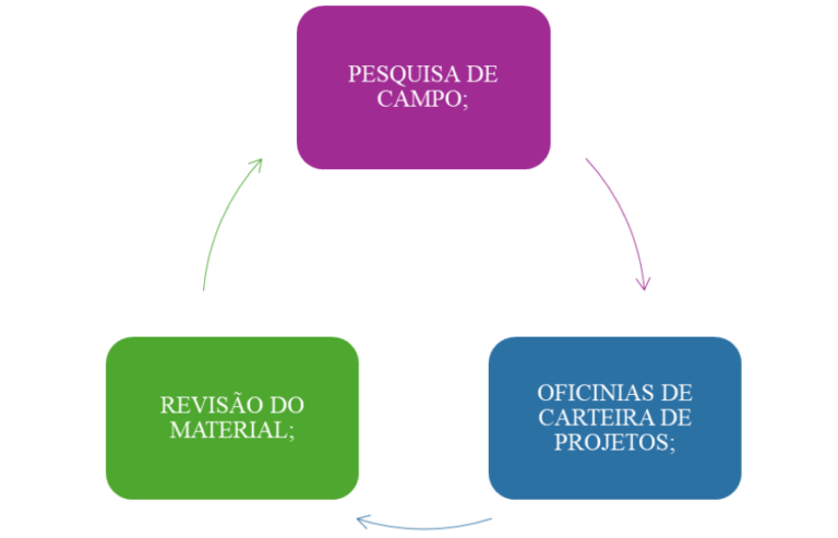 Inicialmente, a equipe mapeou projetos dentro dos oito eixos temáticos, priorizando modelos passíveis de inspiração ou adaptação, considerando a realidade dos municípios da FF-AP, e projetos de implementação imediata (acessados através de editais, como ONG’s, agências de fomento, fundos de investimento, entre outros). Também consideramos projetos estruturantes conforme os cenários sociais da FF-AP, exemplo do Novo Programa de Aceleração do Crescimento (PAC).