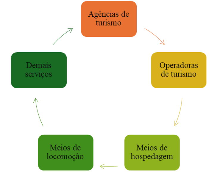 A partir disso, observa-se a existência da chamada “cadeia produtiva do turismo” (tabela 44), que corresponde à articulação entre diversos atores envolvidos na prática turística e os equipamentos utilizados nesse setor.