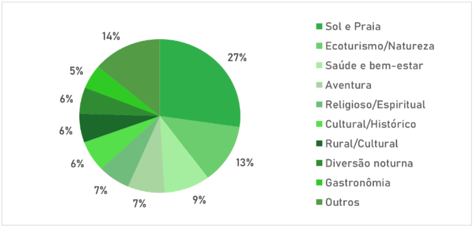 A partir da cadeia produtiva do turismo, o crescimento do turismo no Brasil reflete a importância do país como destino turístico, através da variedade de atrações (gráfico 17) e das diversidades de segmentações existentes e praticáveis do turismo no Brasil (tabela 45).