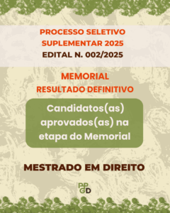 ⚖ O Mestrado em Direito da UNIFAP divulga o Resultado Definitivo da Etapa do Memorial – PS 2025 – Edital nº 02/2025 – PPGD/UNIFAP – PS Suplementar.