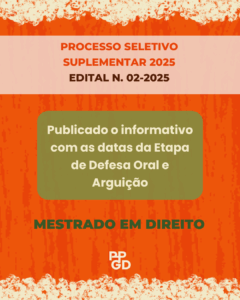 ⚖ O Mestrado em Direito da UNIFAP divulga o informativo com as datas da Etapa de Defesa Oral e Arguição – PS Suplementar 2025 – Edital nº 02/2025 – PPGD/UNIFAP.
