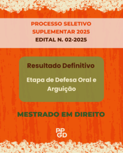 ⚖ O Mestrado em Direito da UNIFAP divulga o Resultado Definitivo da Etapa de Defesa Oral e Arguição – PS 2025 – Edital nº 02/2025 – PS Suplementar – PPGD/UNIFAP.