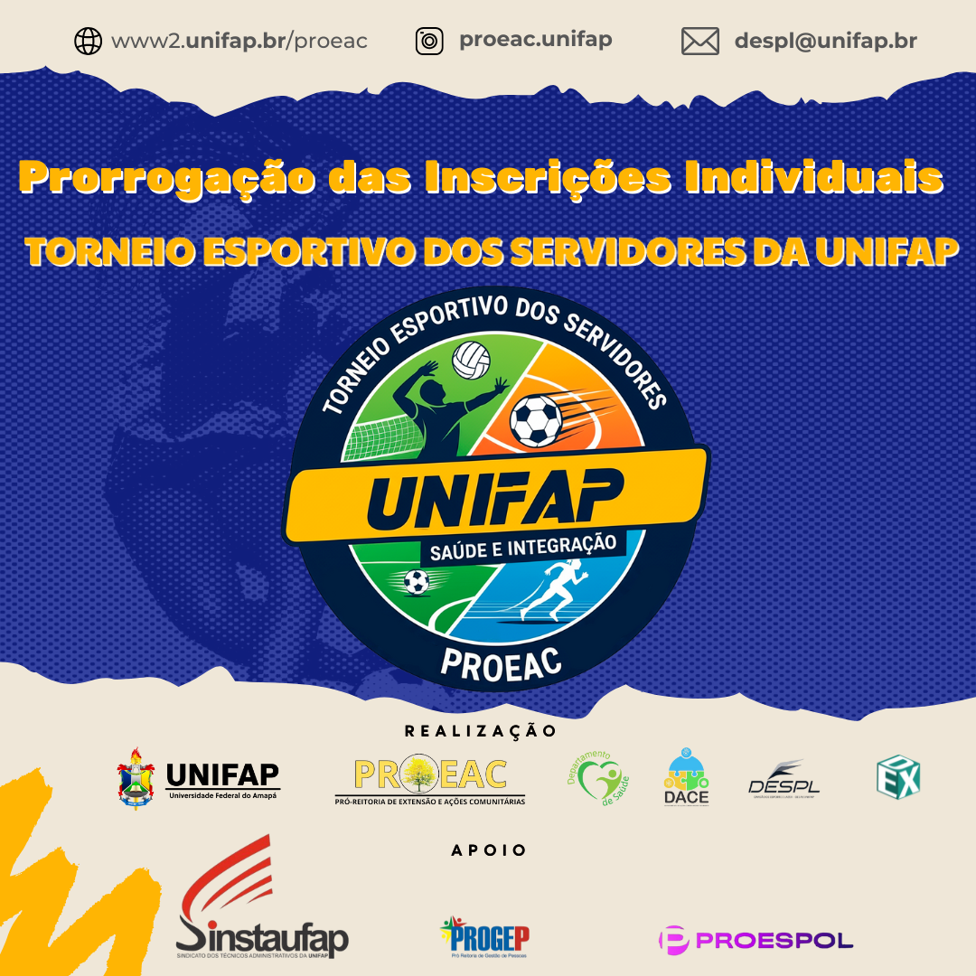 A Universidade Federal do Amapá (UNIFAP), por meio da Pró-Reitoria de Extensão e Ações Comunitárias (PROEAC) e da Divisão de Esporte e Lazer (DESPL), informa a prorrogação do prazo para inscrições individuais referentes ao Edital nº 01/2025 – Competição Esportiva dos Servidores da UNIFAP.