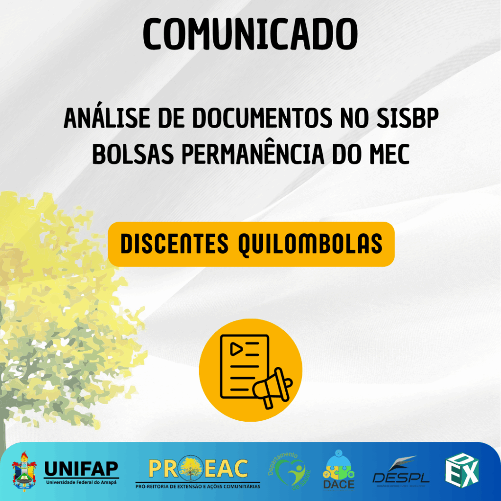 Análise de Documentos no SISBP e Cadastro de Bolsas Permanência do MEC para Discentes Quilombolas – Outubro 2025 Comunicado / 2 de outubro de 2025 / Comunicado Análise de Documentos no SISBP e Cadastro de Bolsas Permanência do MEC para Discentes Quilombolas – Outubro 2025 Read More »