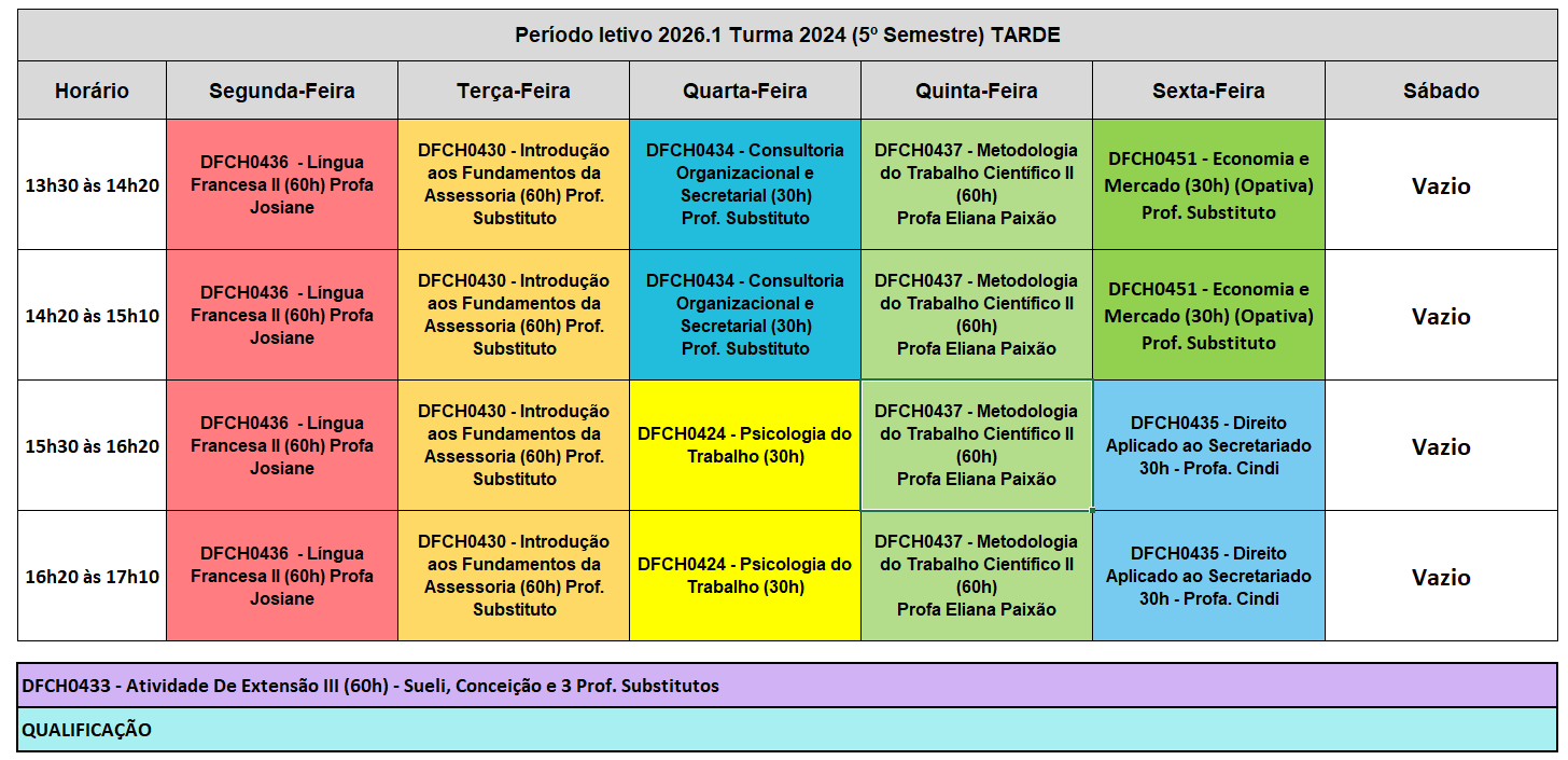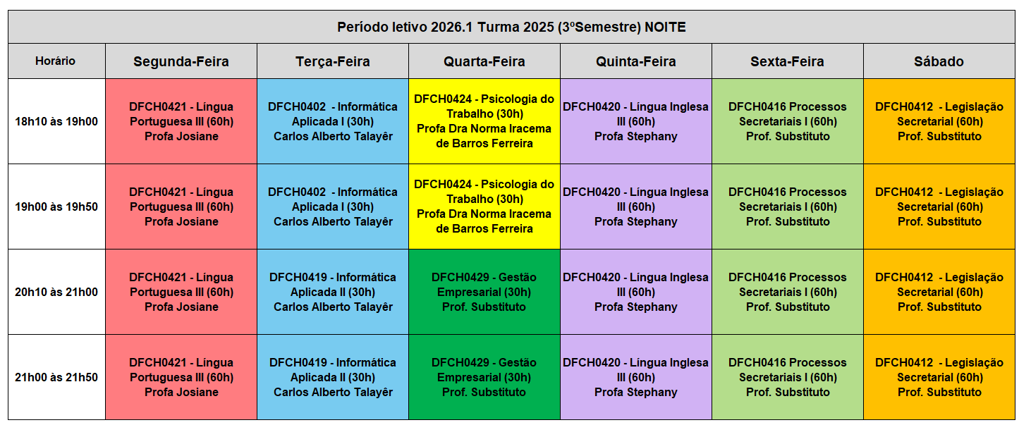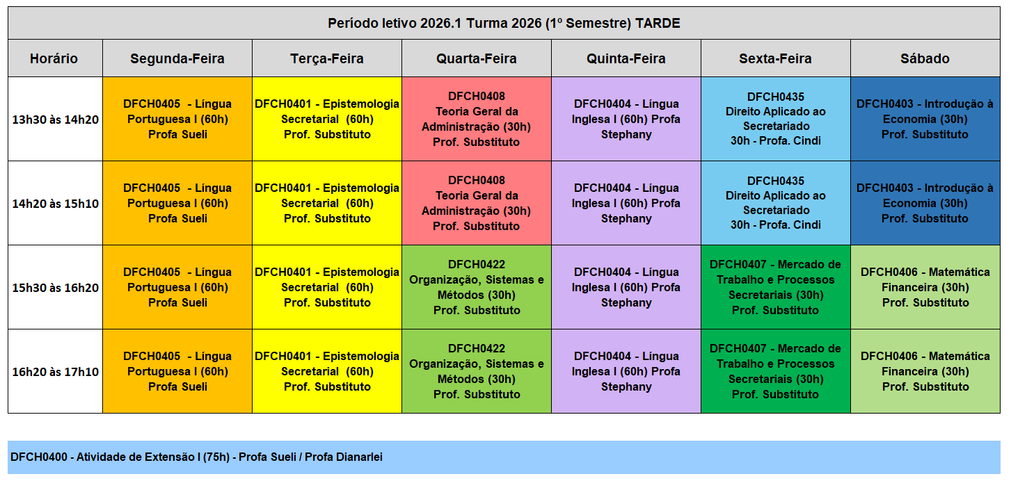 Ajuste de matrícula: 19 e 20 de março de 2026;